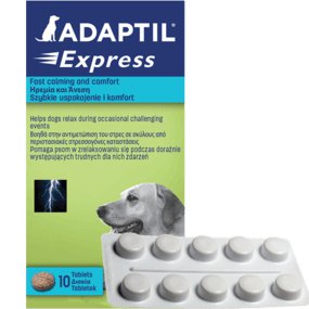 ADAPTIL Express to wygodne rozwiązanie pozwalające szybko uspokoić psa w przypadku nagłego hałasu.