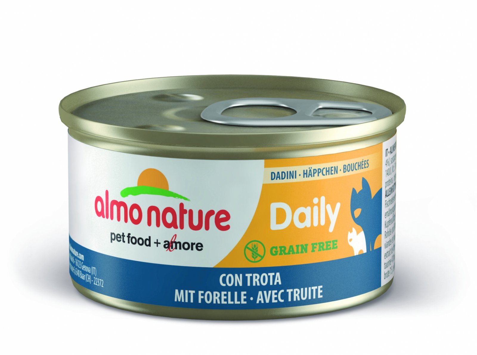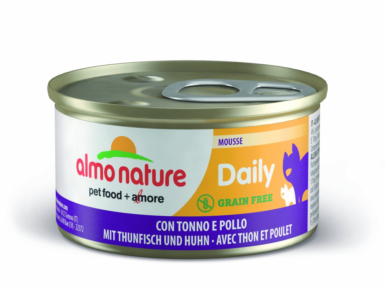 Almo NAture Daily Menu to mięsne lub rybne kawałeczki w smakowitym sosie, lub doskonały mus. Przyrządzone z białego i czerwonego mięsa, ryb, jaj, warzyw i ryżu o jakości odpowiedniej do produkcji pozywienia dla zwierząt.