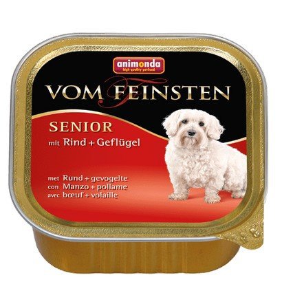 Vom Feinsten Senior to zbilansowany, smakowity zdrowy pokarm najwyższej jakości dla dorosłych psów w wieku od 7 lat. Specjalna selekcja i jakość surowców mięsnych gwarantują niepowtarzalną kulinarną ucztę. Pasztety z drobnymi kawałeczkami mięsa dostarczają starszemu psu wszystkie ważne dla życia składniki pokarmowe i są dokładnie dostosowane do specjalnych potrzeb żywieniowych psów seniorów.