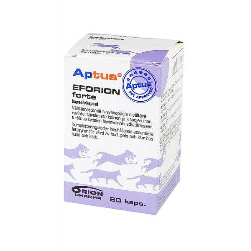 Stosowanie Eforionu kapsułki z przewagą kwasów n-6 w stosunku do n-3 (18:1) jest zalecane w celu utrzymania prawidłowej kondycji, a nawet jako wsparcie leczenia chorób skóry, sierści i pazurów. Preparat Eforion olej zawierający kwasy tłuszczowe w zbliżonych proporcjach (1:2,5) stosowane są do wzbogacania ubogiej, monotonnej diety, także niektórych odmian karm suchych. Takie proporcje mają działanie przeciwzapalne i są szczególnie polecane młodym, starszym i osłabionym zwierzętom. Eforion jest również stosowany do poprawy jakości sierści, ochrony skóry i zmniejszenia łupieżu.