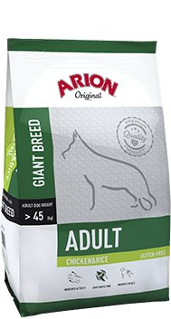 Arion Original Adult Giant Breed Chicken and Rice to karma stworzona specjalnie dla dorosłych psów ras olbrzymich, które ważą powyżej 45 kg. Jest odpowiednia dla ras takich jak Bullmastiff, Dog de Bordeaux, Dog Niemiecki, Bernardyn.