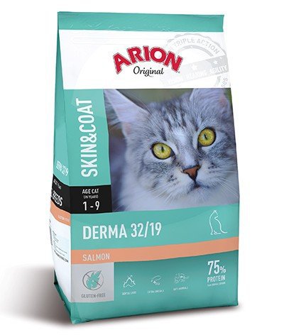 Arion Original Cat Derma Skin & Coat 32/19 to bezglutenowa karma stworzona specjalnie dla kotów z problemami skórnymi. Ta dieta uwzględnia unikalne potrzeby kotów dotkniętych problemami skórnymi, zapewniając im zdrowe i zbilansowane pożywienie.