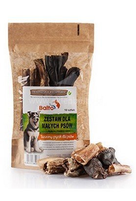 - W skład zestawu wchodzi aż 10 kawałków pyszności - wszytko co Twój mały przyjaciel uwielbia czyli kawałki: tchawic, przełyków, wątroby.