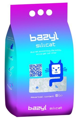 Bazyl Silicat to żwirek silikonowy dla kotów, który posiada znakomite własności absorpcyjne, jest lekki, wydajny, wygodny w użyciu. Nie wymaga stałego uzupełniania. Higroskopijny, niezbrylający, bezzapachowy.