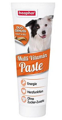 Multiwitaminowa pasta smakowa dla psów. Chroni przed problemami skórnymi, zapewnia błyszczącą sierść, wzmaga witalność, a dodatek L-karnityny stymuluje rozwój mięśni i pobudza organizm do spalania tłuszczu.