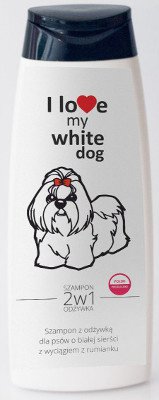 - Szampon z odżywką dla psów o białej sierści z wyciągiem z rumianku