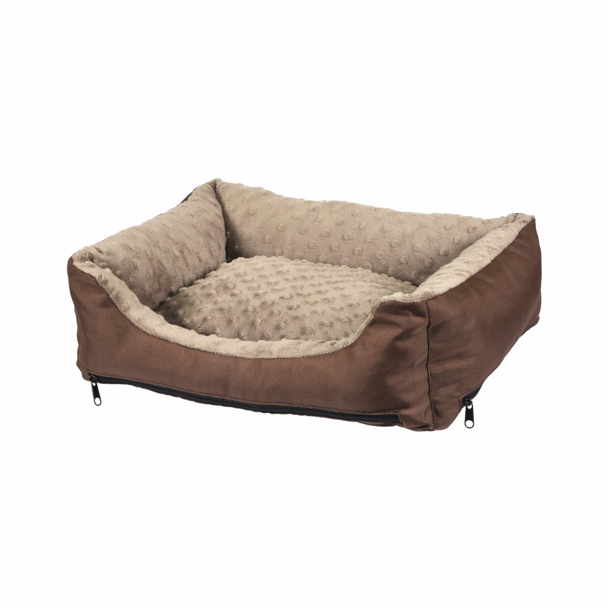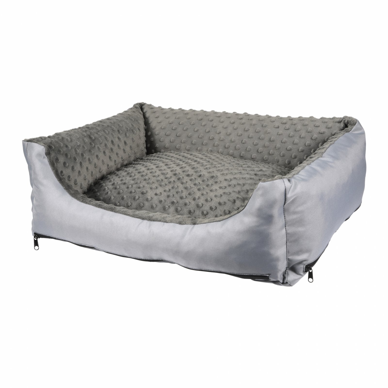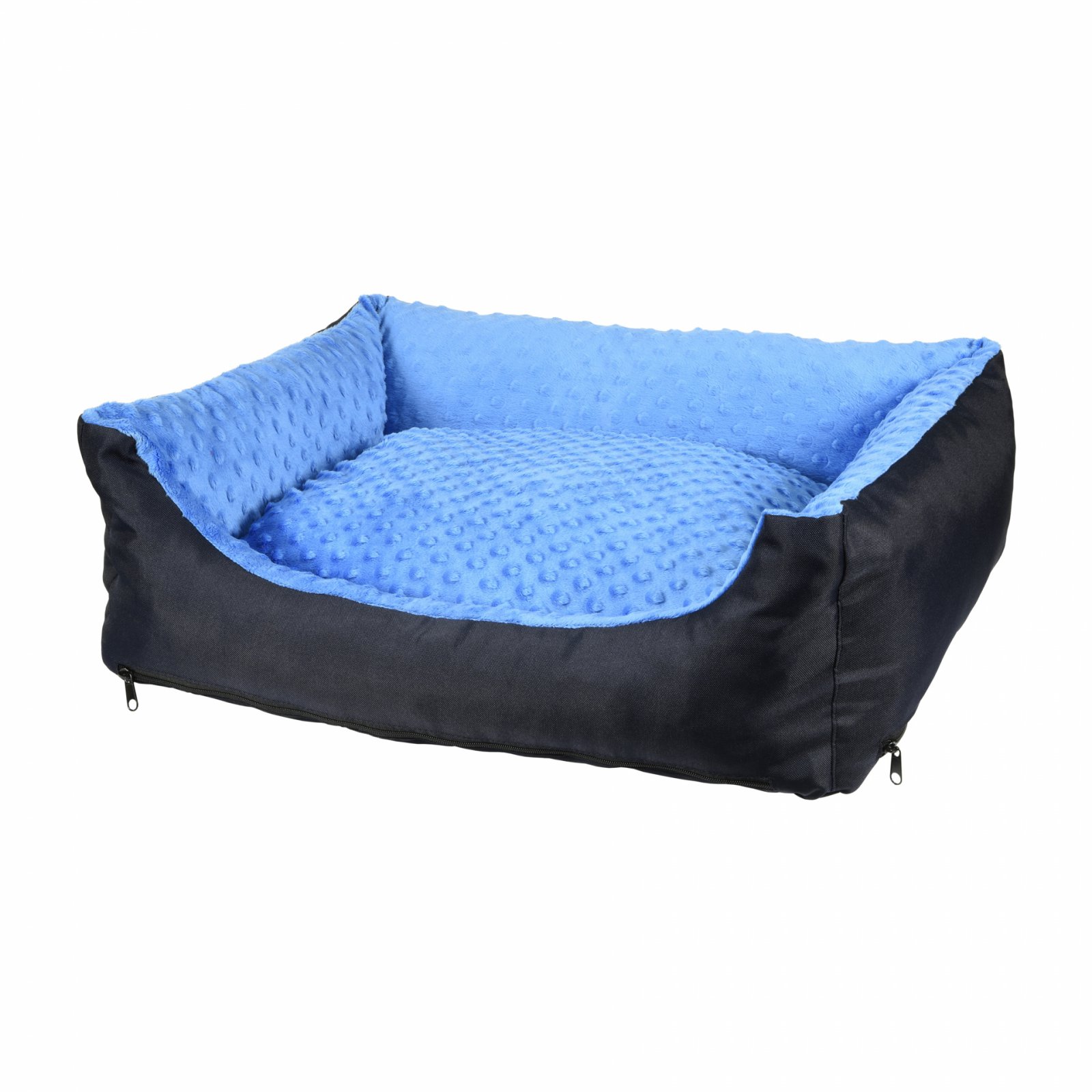 Legowisko wykonane z miękkiego i stabilnego materiału na zewnątrz i miekkiegi minky w środku.