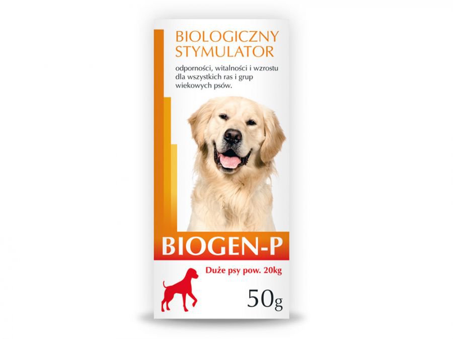 Biopreparat BIOGEN-P dostarcza do organizmu psów naturalne i aktywne biologicznie substancje o silnym działaniu bodźcowym, przez co wyrównuje zaburzenia w przemianie materii, jakie powstają w wyniku oddziaływania czynników stresowych takich jak: transport zwierząt, niewłaściwe żywienie, złe warunki środowiskowe, wystawy, ciąża, odłączenia od matek, polowania, choroby, szczepienia i inne. Zawierający probiotyk biopreparat dla wszystkich ras i grup wiekowych psów (okresowy dodatek do karmy). Biopreparat powoduje wprowadzenie do środowiska jelitowego psów specjalnie dobranego zestawu mikroorganizmów tworzących wzajemnie symbiotyczne układy i będących naturalnymi przedstawicielami ich przewodu pokarmowego. Korzystne działanie tych mikroorganizmów polega na obniżeniu pH treści jelit dzięki produkcji metabolitów kwaśnych, do których należy biologicznie najwartościowszy prawoskrętny kwas mlekowy, lotne kwasy organiczne: octowy i mrówkowy, a także w niewielkich ilościach kwas propionowy i masłowy. Niskie pH jelita grubego utrudnia rozwój enterobakterii, przetrwalnikujących bakterii beztlenowych oraz innych chorobotwórczych mikroorganizmów. Kompozyt mikrobiologiczny (probiotyk) przywraca i utrwala właściwy dla organizmu psów układ różnych grup fizjologicznych bakterii. Łagodzi stresy, pobudza perystaltykę jelit, polepsza resorpcję tłuszczów, wapnia, fosforanów i soli żelaza, aktywizuje metabolizm aminokwasów i wydalanie toksycznych związków oraz dostarcza organizmowi witamin z grupy B i K oraz prekursorów witaminy A oraz D. Wysoka aktywność enzymatyczna bakterii wchodzących w skład biopreparatu powoduje zwiększenie efektywności żywieniowej składników dawki pokarmowej, wpływa na lepsze wykorzystanie pasz oraz lepszą dynamikę wzrostu i rozwoju psów oraz poprawę ich kondycji.Bakterie te, produkują ponadto nadtlenek wodoru, nizynę oraz acidofilinę, które hamują rozwój chorobotwórczych bakterii i niektórych wirusów oraz substancje antyenterotoksyczne przeciwko aminom heterocyklicznym chorobotwórczych szczepów Escherichia coli i niektórym mykotoksynom. W konsekwencji w sposób istotny ograniczają choroby biegunkowe u psów, szczególnie u szczeniaków oraz schorzenia wynikające z zatruć paszami zawierającymi nadmierną ilość grzybów chorobotwórczych. Bakterie kompozytu mikrobiologicznego (probiotyku) charakteryzują się także wysokim potencjałem do multiplikacji oraz swoistym tropizmem do zasiedlania nabłonków określonych odcinków przewodu pokarmowego, kolonizując (zasiedlając) go szybciej niż czynią to inne drobnoustroje chorobotwórcze. W wyniku tego tworzy się u psów naturalna, ochronna bariera odpornościowa hamująca rozwój schorzeń powodowanych przez patogenne szczepy Escherichia coli, Salmonella, Mycobacterium, Shigella, Bacteroides, Proteus, Streptococcus, Clostridium, Pseudomonas, Vibrio, a także Rotawirusa i niektórych innych wirusów patogennych. Wysokoskoncentrowany preparat witaminowo-mineralno aminokwasowy znajdujący się w biopreparacie BIOGEN-P zapewnia pokrycie dodatkowego zapotrzebowania psów na witaminy, makro i mikroelementy, węglowodany oraz aminokwasy, niezbędne do normalnego funkcjonowania organizmu w warunkach zwiększonej żywotności i witalności i zmniejszonym zużyciu pasz.