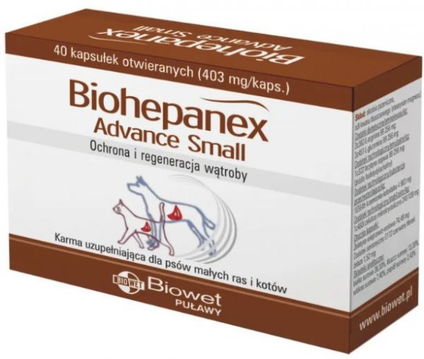 Biowet Biohepanex Advance Small kapsułki dla psów małych ras i kotów, wspomagające funkcje wątroby 40kaps.