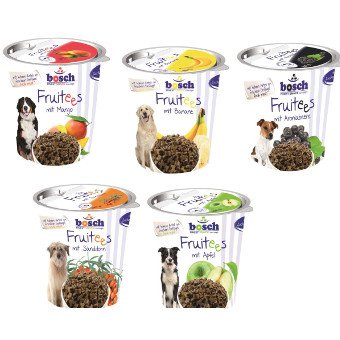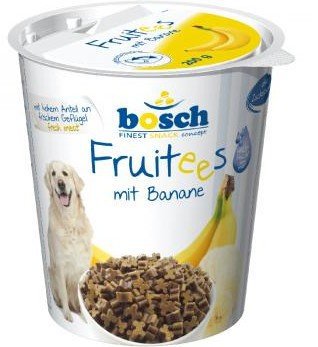 Przekąski Bosch Fruitees zawierają 20% świeżego mięsa drobiowego, które zostało połączone z suszonymi owocami, nadając im wyjątkowy i niepowtarzalny smak. Mają półwilgotną konsystencję, z wilgotnością końcową wynoszącą 28%, co sprawia, że są łatwo przyswajalne przez organizm psa. W procesie produkcji zrezygnowano z dodatku cukru, aromatów i barwników, co czyni je zdrowymi i naturalnymi przysmakami.