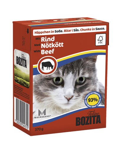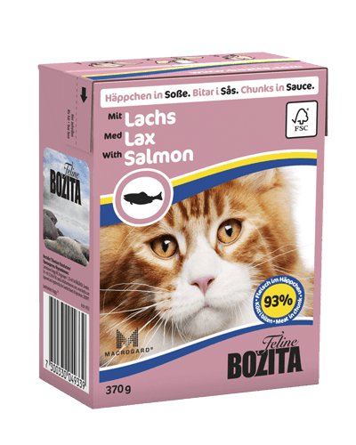 Kawałki w galaretce Bozita to smaczna mokra karma dla kotów oparta na surowcach jakości. Duża zawartość mięsa i mała ilość tłuszczu oraz naturalnie zbilansowana zawartość witamin i składników mineralnych.