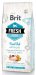 Receptura karm Brit Fresh zawiera naturalne źródła aminokwasów, które wspierają zdrowe stawy i tkanki u psów. Dodatek świeżego mięsa wzbogaca smak karmy, poprawia jej przyswajalność i dostarcza psom dużą dawkę energii.