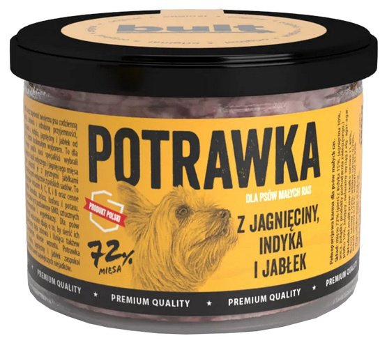 Ekskluzywny przysmak - potrawka z jagnięciny z indykiem i jabłkami dla wymagających pupili. Jeśli chcesz zapewnić swojemu psu codzienną porcję zdrowia i odrobinę przyjemności, potrawka z indyka, jagnięciny i jabłek od BULT będzie doskonałym wyborem.