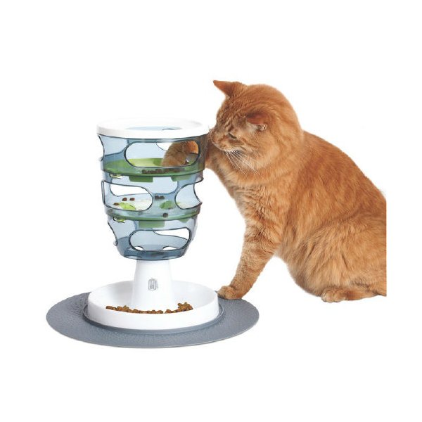 Labirynt na przysmaki to inteligentny sposób na podawanie smakołyków lub karmy Twojemu kotu. Kot przesuwa karmę lub przysmaki przez labirynt wkładając łapki przez okienka do momentu aż wypadną do miseczki na dole labiryntu. Labirynt oddziałuje na zmysł dotyku oraz smaku a jednocześnie stymuluje inteligencję i zapewnia kotu odrobinę ruchu podczas jedzenia. Sprawiając aby kot popracował na swoją karmę lub monitorując ilość karmy w labiryncie możemy wykorzystać go jako cenne narzędzie w walce z nadmiernym przejadaniem się lub otyłością u kotów. Labirynt oferuje płynną regulację dla różnych poziomów trudności aby stanowić odpowiednie wyzwanie dla twojego kota