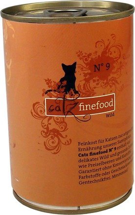 Specjał dla kotów – wartościowa karma dla naszych pupili. Catz finefood N°9 zawiera dużo delikatnej dziczyzny oraz zdrowe dodatki, jak borówka i ziemniak. Bez konserwantów, barwników i wzmacniaczy smaku. Nie zawiera GMO. Mmmmiau!