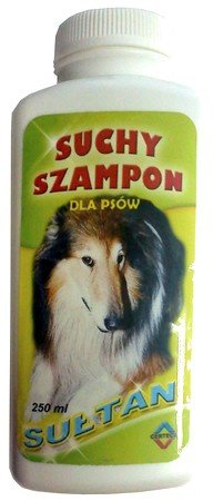 Suchy szampon dla psów - 'Sułtan' umożliwia pielęgnację bez użycia wody. Szczególnie przydatny w przypadku stanów chorobowych skóry zwierzęcia.