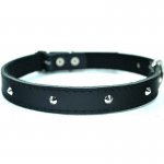 Elegancka i mocna obroża wykonana ze skóry naturalnej, ozdobnie nabijana nitami ze stali chromowanej.