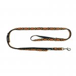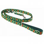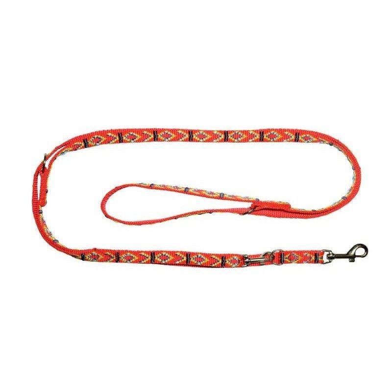 Elegancka smycz dla psa wykonana z taśmy polipropylenowej, zdobiona barwnym „indiańskim” haftem.