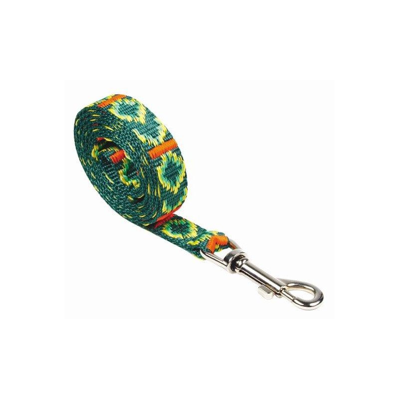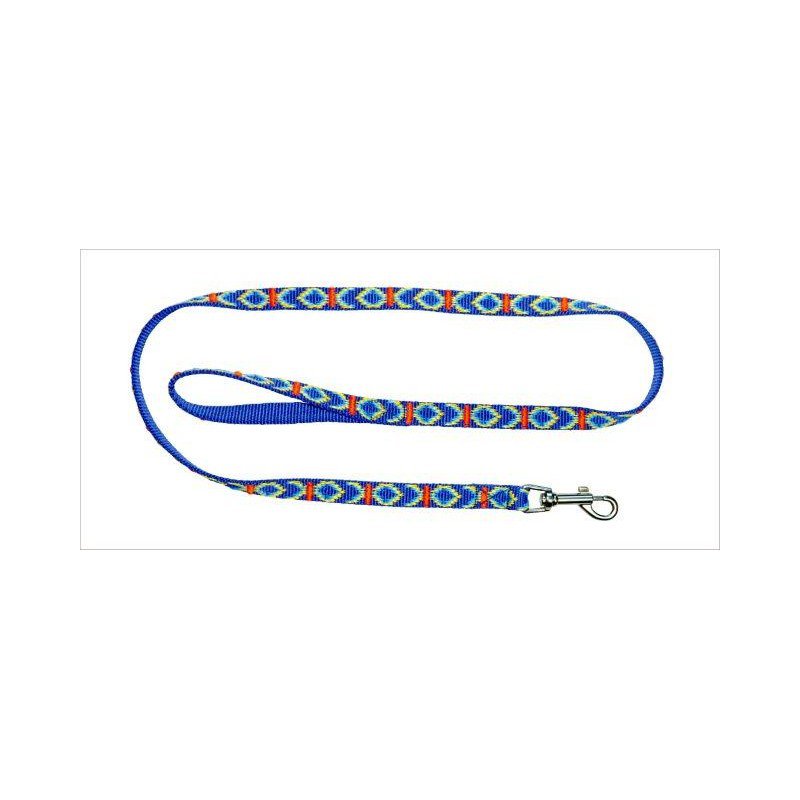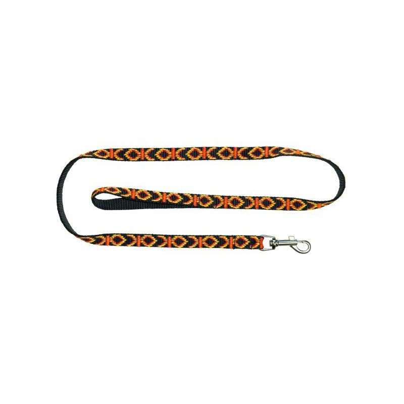 Elegancka smycz dla psa wykonana z taśmy polipropylenowej, zdobiona barwnym „indiańskim” haftem.