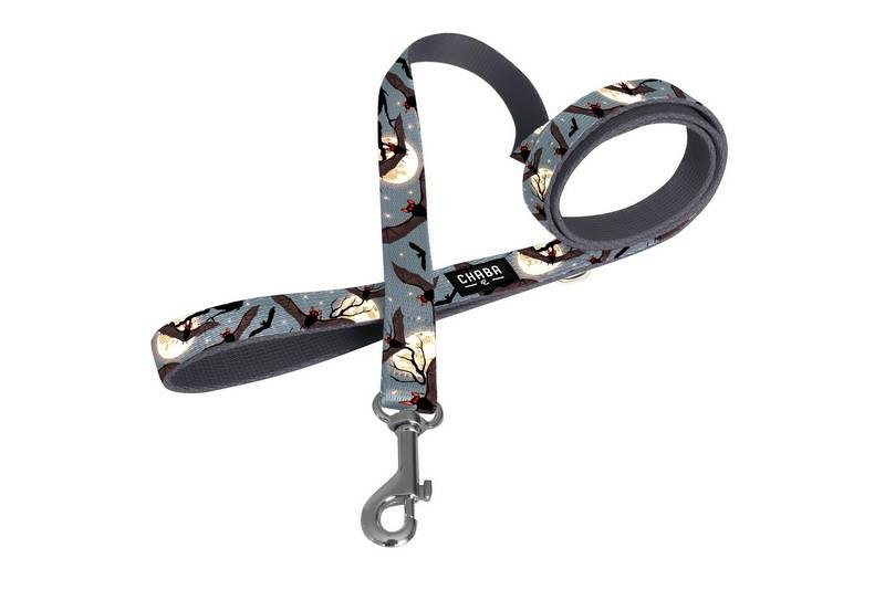 Smycz posiada karabińczyk, który należy przymocować do obroży lub szelek, a po drugiej stronie znajduje się uchwyt, dzięki któremu wygodnie i pewnie trzymamy smycz w dłoni. Smycze pojedyncze CHABA dostępne są w trzech szerokościach taśm – 1,6 cm, 2cm oraz 2,5 cm.