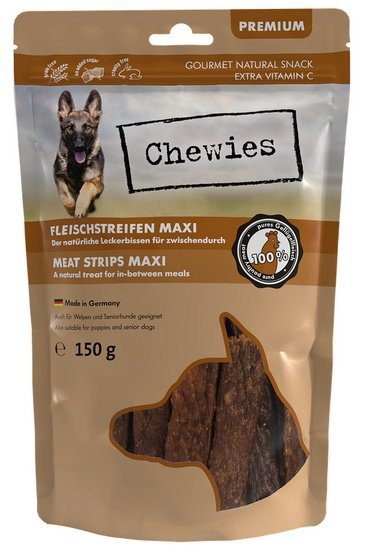 Przysmaki Chewies Maxi Meat Strips są wyprodukowane w Niemczech, zgodnie z najwyższymi standardami jakości. Każdy pasek ma długość około 10 cm i szerokość od 2 do 3 cm. Dzięki temu, że paski są łatwo podzielne, są idealne zarówno dla dorosłych psów, jak i szczeniąt.
