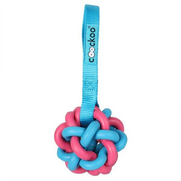 Szarpak dla psa wykonany z sześciu splecionych ze sobą gumowych pierścieni. Splecione pierścienie tworzą bardzo trwałą kulkę. Zabawka wykonana jest w bardzo ładnej kolorystyce niebiesko- różowej. Do kulki z pierścieni przymocowana jest taśmowy uchwyt. Umożliwia to rzucanie psu zabawki oraz szarpanie. Zabawka zapewni psu wiele godzin radości. Przy okazji mocna guma zapewni zdrowe zęby Twojego psa.