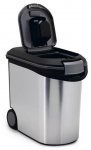 Specjalny uchwyt pozwala łatwo przenosić pojemnik i dosypywać karmy.Uchylna klapka w pokrywie pozwala na wygodne pobieranie karmy.