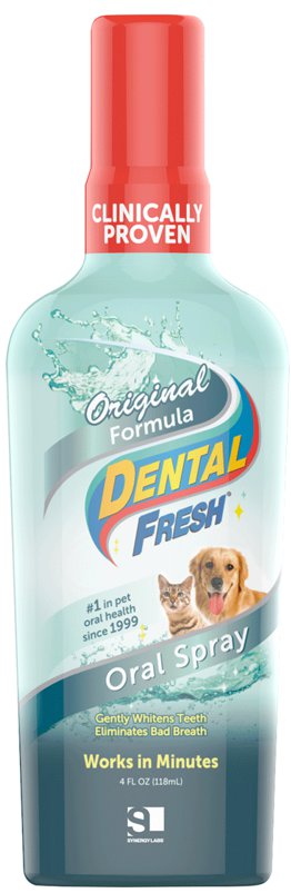 Dental Fresh Spray 118ml to preparat, który nie tylko zapewni dobrą kondycję zębów Twojego zwierzęcia, ale również wyeliminuje bakterie będące przyczyną nieprzyjemnego zapachu. Produkt może być stosowany zarówno u psów, jak i kotów. Najlepiej przyzwyczajać zwierzęta do pielęgnacji zębów już od momentu, gdy pojawią się u nich mleczaki. W ten sposób wszystkie czynności pielęgnacyjne będą odbywać się bez stresu i nerwów. Produkt ma działanie potwierdzone klinicznie. Stanowi atrakcyjną alternatywę dla tradycyjnych past, które wymagają zazwyczaj fizycznego szorowania zębów, aby uzyskać pozytywny efekt działania.