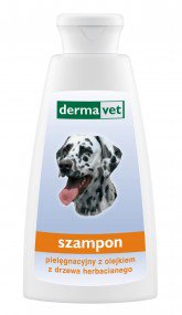 Szampon DERMAVET jest przeznaczony dla psów z każdą długością sierści. Zawiera olejek z drzewa herbacianego o działaniu bakteriobójczym, przeciwzapalnym i łagodzącym podrażnienia.