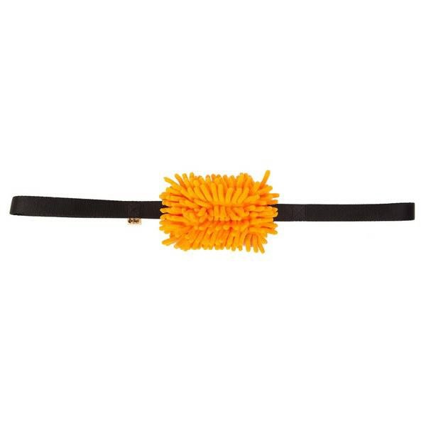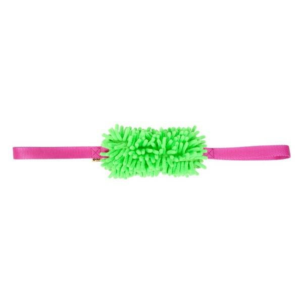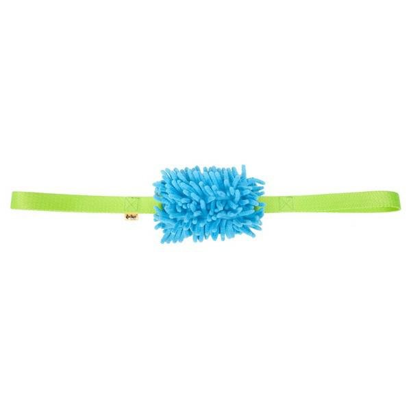 Mocny szarpak dla psa wykonany jest z wytrzymalej taśmy z dwoma uchwytami na końcach. Po środku umieszczony został materiał imitujący mop. Pies podczas zabawy czyści sobie zęby oraz wzmacnia żuchwę.