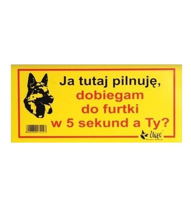 Dingo Tabliczka ostrzegawcza "Ja tutaj pilnuję, dobiegam do furtki w 5 sekund, a Ty?"