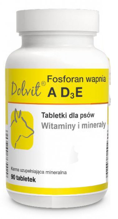 DOLFOS Fosforan Wapnia AD3E to witaminowo-mineralny suplement diety dla psów, który zawiera wapń, fosfor oraz witaminy A, D3 i E. Jest szczególnie korzystny dla psów w okresie wzrostu, wspierając prawidłowy rozwój kośćca i uzębienia. Witamina A wspomaga odporność organizmu oraz procesy wzrostu i rozwoju młodych psów. Witamina D3 reguluje gospodarkę fosforowo-wapniową, zapobiegając krzywicy. Preparat wzmacnia układ kostny, zęby, włosy i skórę, oraz zwiększa zdolności rozrodcze. Jest idealny jako uzupełnienie niedoborów mineralno-witaminowych u szczeniąt, suk ciężarnych, karmiących i psów dorosłych, zwłaszcza po urazach ortopedycznych.