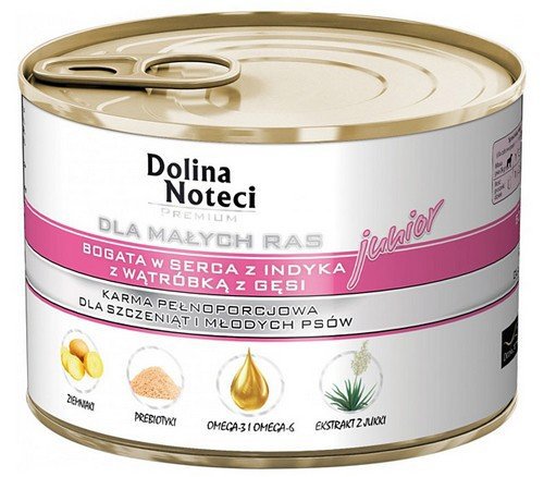 Dolina Noteci Dla Małych Ras Junior to zbilansowana i pełnowartościowa karma, której głównym celem jest zapewnienie Twojemu małemu psiakowi najlepszej jakości posiłku, by wspomóc jego zdrowy rozwój i pełną radość życia. Wybierz tę karmę, aby zapewnić swojemu szczeniakowi najwyższą jakość i wartość odżywczą, dzięki której stanie się on pełen energii, zdrowia i szczęścia.