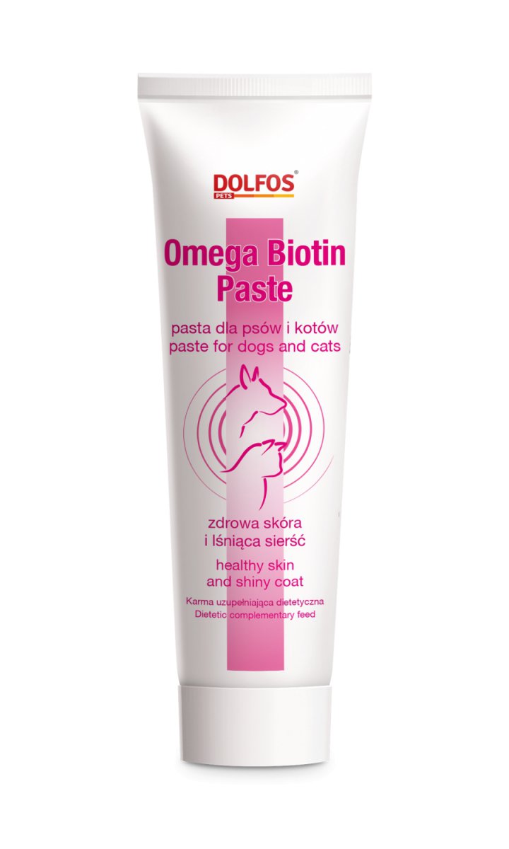 Omega Biotin Paste to preparat dla psów i kotów wspomagający funkcje skóry w przypadku jej stanów zapalnych i nadmiernego wypadania sierści.