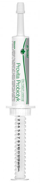 Probiotyk Provita stabilizuje mikroflorę bakteryjną, poprawia przemianę materii, wspomaga działanie układu immunologicznego, zwiększa łaknienie i zabezpiecza przed wieloma chorobami przewodu pokarmowego. Jest przeznaczona dla małych zwierząt: psów, kotów i królików. Zalecany jako środek wspomagający leczenie biegunek różnego tła (wirusowych, bakteryjnych, spowodowanych terapią antybiotykową). Również do profilaktyki przeciwbiegunkowej oraz stosowany przy zaburzeniach apetytu i przemiany materii, spowodowanych stresem, zmianą pożywienia lub przebytymi chorobami. Preparat można używać profilaktycznie u młodych zwierząt. Zawiera żywe szczepy bakterii saprofitycznych - Lactobacillus acidophilus i Streptococcus faecium. Podawane w dużych ilościach niepatogenne bakterie saprofityczne mają antagonistyczne działanie w stosunku do bakterii patogennych. Poprzez produkcję kwasu mlekowego zakwaszają środowisko uniemożliwiając rozmnażanie się bakterii szkodliwych, walczą z nimi o miejsce adhezji i substancje odżywcze. Na zasadzie bariery kolonizacji zabezpieczają przed zakażeniem Salmonellą sp. E. Coli i C. difficile. Witaminy A i E - łagodzą stres, który bywa spowodowany zmianą karmy, przeprowadzką, zmianą właściciela, utratą partnera czy też młodych. Ekstrakt z drożdży - ma działanie antystresowe, zwiększa odporność immunologiczną i przeciwdziała powstawaniu nowotworów.