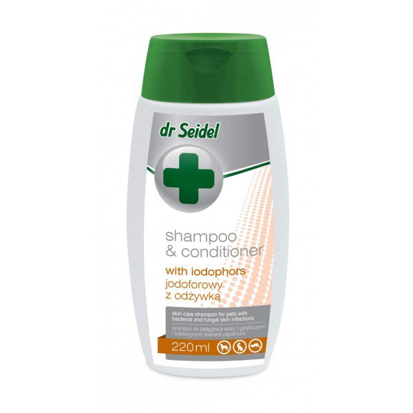 Doskonały koncentrowany szampon jodoforowy Dr Seidel z odżywką to skuteczny środek pielęgnacyjny dla psów i innych zwierząt w walce z stanami zapalnymi skóry. Zawiera aktywne składniki, które pomagają w pielęgnacji sierści i ograniczają rozwój patogenów chorobotwórczych.