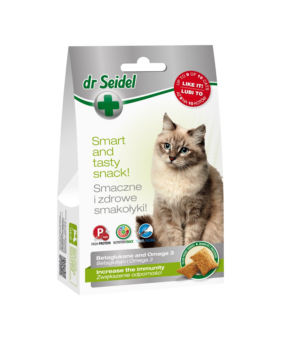Jedyny na rynku przysmak dla kotów wzbogacony o ß-1,3/1,6-D-glukan i Omegę 3 w ilości odpowiadającej suplementom diety. ß-1,3/1,6-D-glukan wzmacnia naturalną odporność organizmu przeciwko infekcjom, wspomaga proces regeneracji i gojenia, a także skraca okres rekonwalescencji. Omega 3 pobudza naturalne mechanizmy chroniące organizm przed procesami zapalnymi.