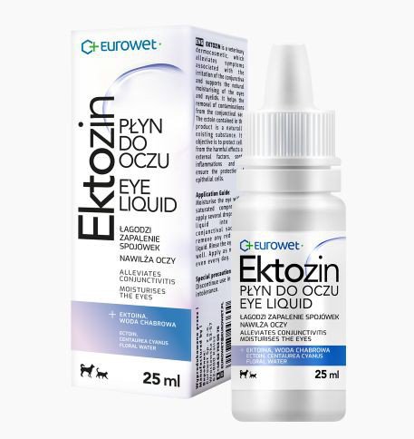 Ektozin jest dermokosmetykiem weterynaryjnym, który łagodzi objawy związane z podrażnieniami spojówek oraz ułatwia naturalne nawilżenie oczu i powiek. Pomaga usunąć zanieczyszczenia z worka spojówkowego. Zawarta w produkcie ektoina jest substancją naturalnie występującą w przyrodzie. Ma za zadanie chronić komórki przed szkodliwym działaniem czynników zewnętrznych, łagodzi stany zapalne, zapewnia ochronę komórek nabłonkowych.