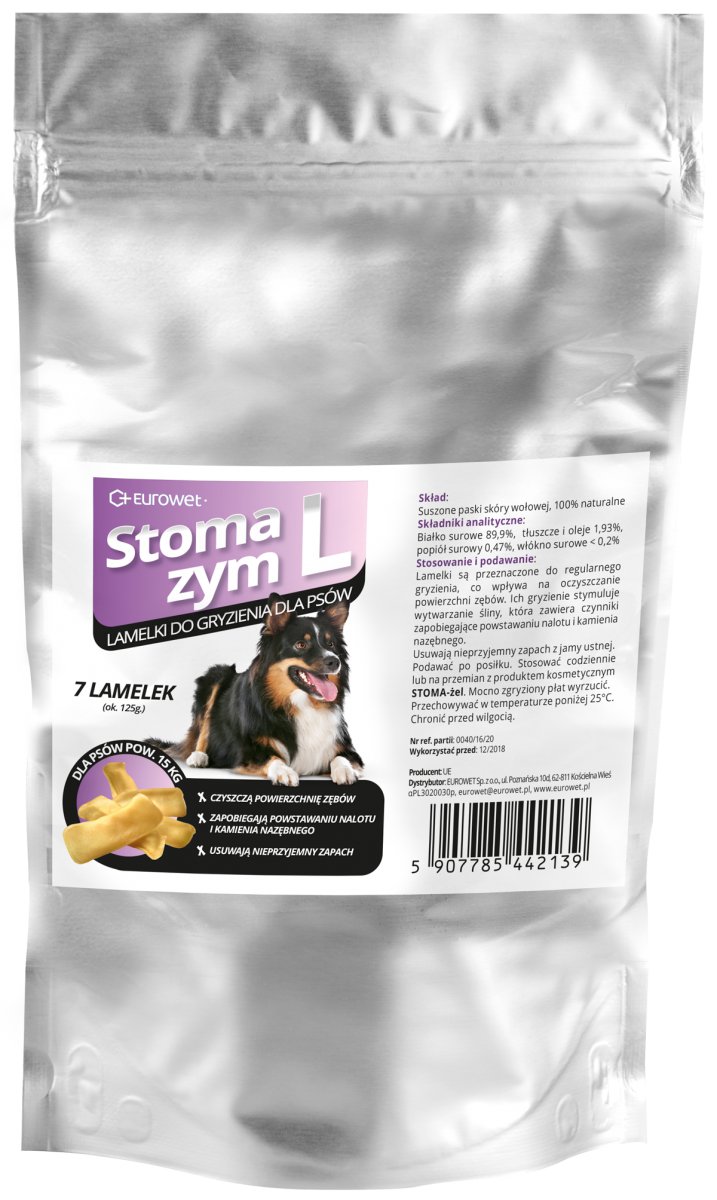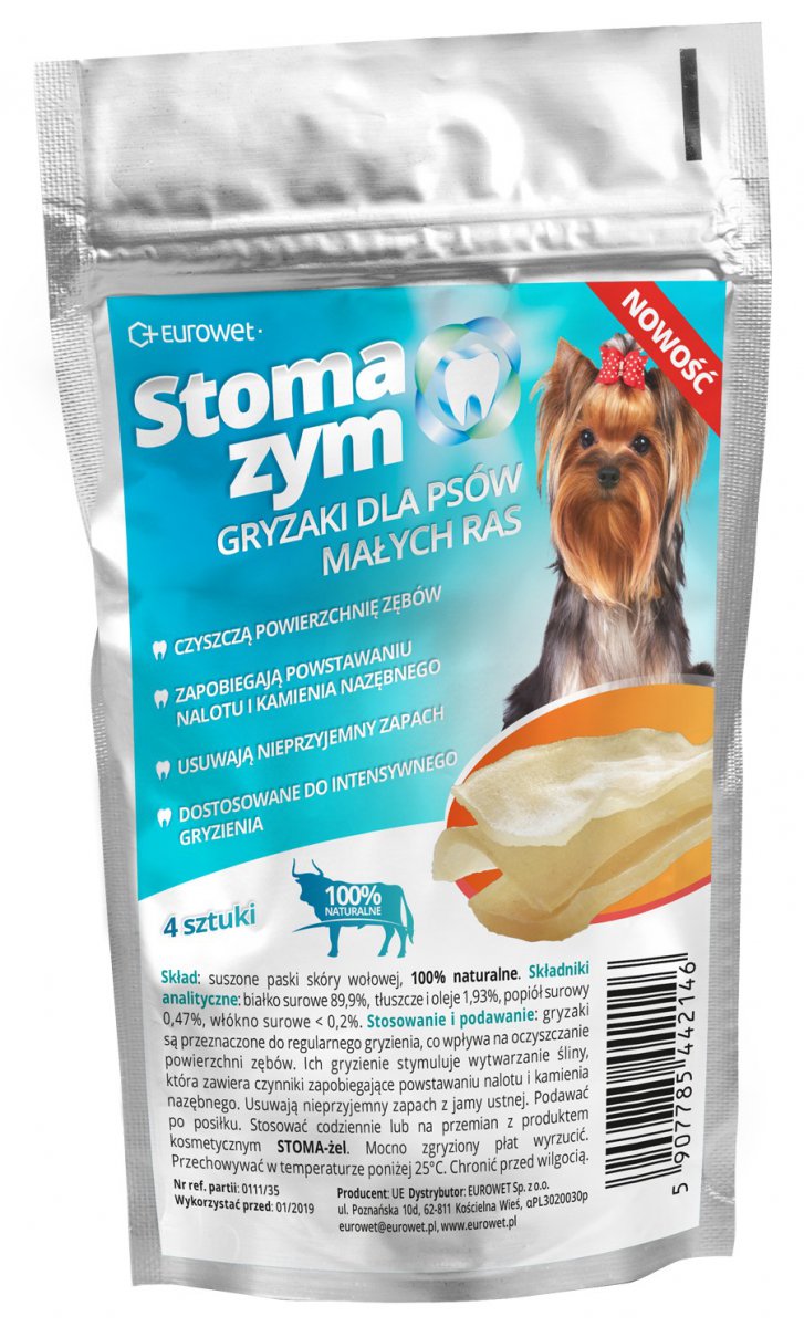 Lamelki z kawałków skóry bydlęcej są przeznaczone do regularnego gryzienia przez psy, co wpływa korzystnie na oczyszczanie powierzchni zębów. Gryzienie stymuluje także wytwarzanie śliny, która zawiera czynniki niwelujące powstawanie nalotu i kamienia nazębnego. Wpływa również korzystnie na usuwanie nieprzyjemnego zapachu z jamy ustnej. Podawać do gryzienia po posiłku. Stosować codziennie lub na przemian z produktem kosmetycznym STOMA-żel. Mocno zgryziony płat wyrzucić. W przypadku połknięcia nie wywołuje zaburzeń trawiennych. Zawiera białko pochodzenia zwierzęcego, do karmienia zwierząt innych niż przeżuwacze.