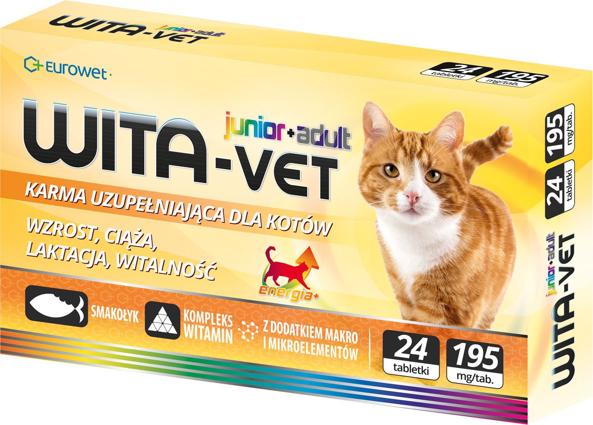 Eurowet Wita-vet Energia to karma uzupełniająca jest przeznaczona dla kociąt, kotek ciężarnych i karmiących, dla kotów wykazujących spadek formy, osłabienie apetytu lub żywionych nieodpowiednią karmą.