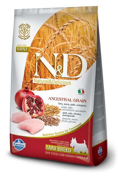 Farmina N&D Ancestral Grain Chicken & Pomegranate Adult Mini Psy dorosłe rasy małe