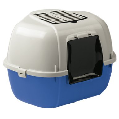 Duża zamykana kuweta narożna, zaprojektowana do postawienia w rogu pokoju lub łazienki.