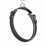 Regulowana obroża z miękkim podbiciem o nowoczesnych zapięciach ( jak w butach narciarskich) umożliwiających bardzo precyzyjne dopasowanie obroży do psa i łatwe jej ściągnięcie .