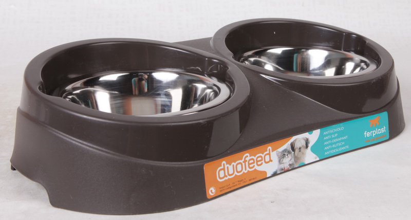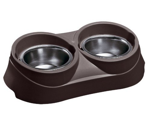 stojak ma lekko ukośny kształt, pozwalający zwierzęciu na wygodny dostęp do misek i tworzący od zewnętrznej strony dodatkową ramkę zapobiegającą wysypywaniu pokarmu i rozlewaniu wody