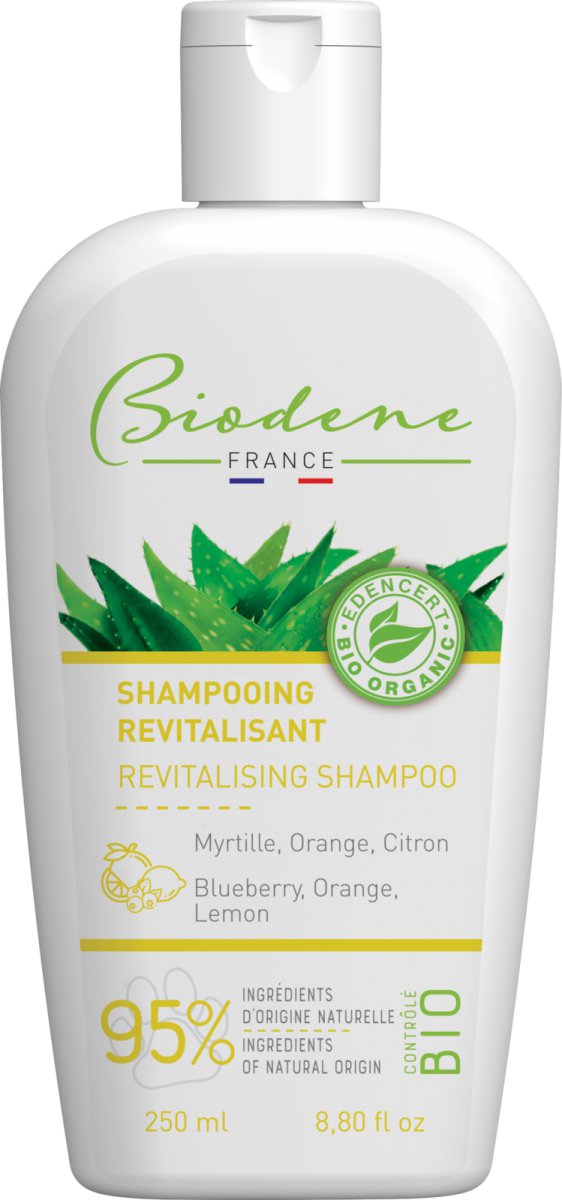 Szampon rewitalizujący to połączenie pięciu ekstraktów roślinnych: borówki amerykańskiej, pomarańczy, cytryny, trzciny cukrowej oraz klonu. Posiada właściwości rewitalizujące - stymuluje odnawianie się komórek, a także delikatnie złuszcza i zmiękcza skórę i sierść.