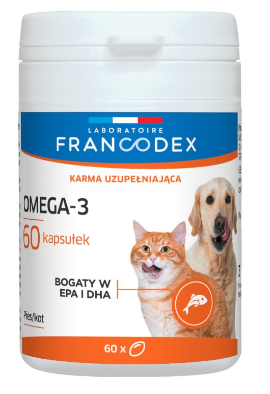 - Suplementacja diety pupila kwasami tłuszczowymi omega-3 korzystnie wpływa na ogólną witalność zwierzęcia, poprawia stan skóry i sierści, wspomaga leczenie stanów zapalnych i bólu stawów oraz ogranicza rozpad tkanki chrzęstnej.