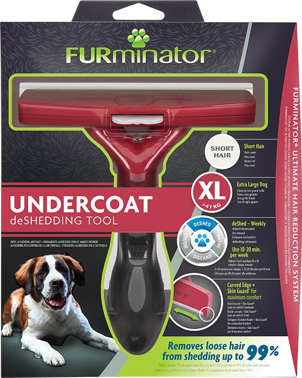 Narzędzie FURminator Undercoat deShedding Tool dla krótkowłosych psów ras olbrzymich wyczesuje podszerstek ograniczając linienie do 99%. Należy stosować na suche włosy, 1-2 razy w tygodniu, przez 10-20 minut jednorazowo.