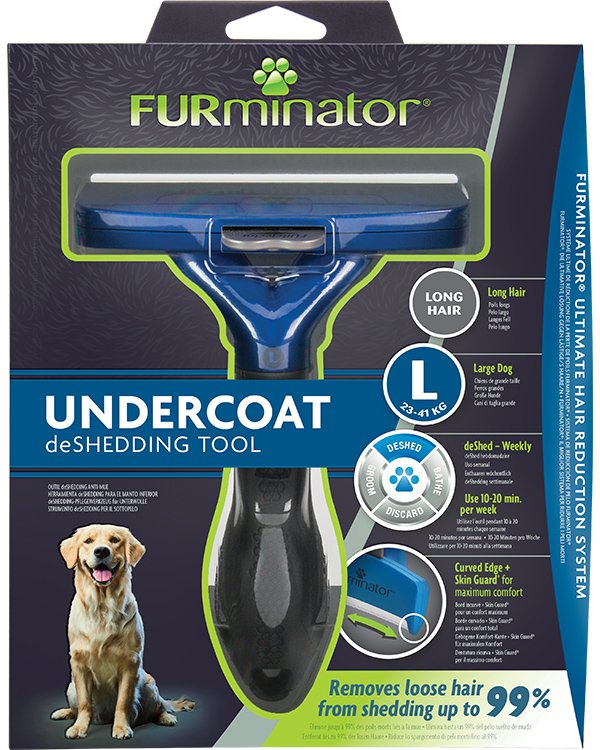 Narzędzie do wyczesywania podszerstka FURminator Undercoat deShedding Tool dla długowłosych psów dużych ras usuwa do 99% martwych włosów z podszerstka. Należy stosować na sucho, 1-2 razy w tygodniu, przez 10-20 minut jednorazowo.
