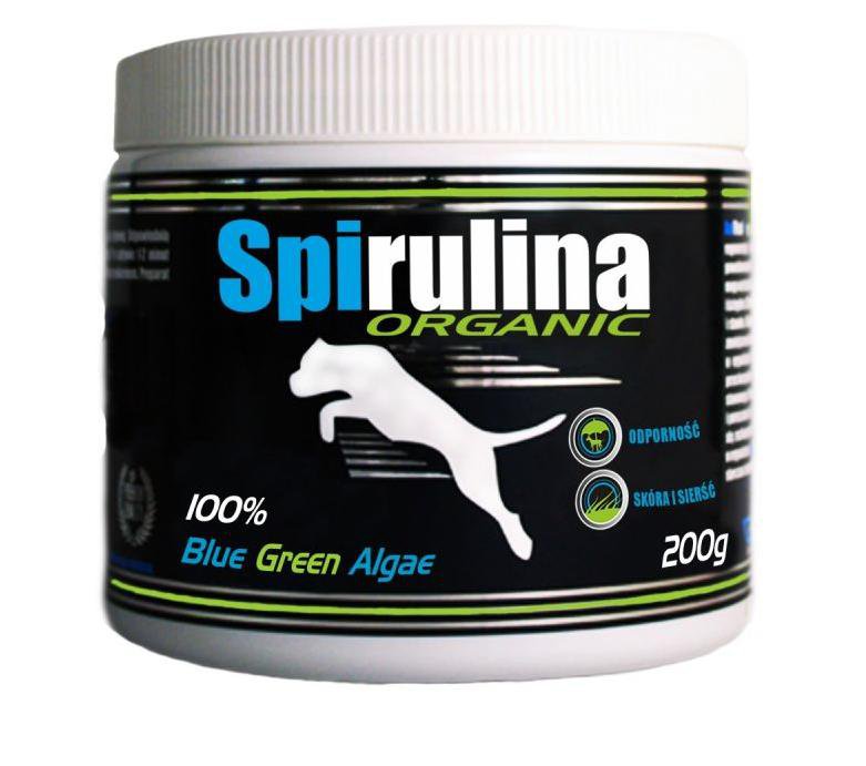Spirulina Organic to suplement uzupełniający dietę psa w szereg aminokwasów, witamin, mikroelementów i innych aktywnych biochemicznie substancji, dostępnych w łatwo przyswajalnej dla organizmu formie. Zwiększa zdolność regeneracji powysiłkowej mięśni. Wzmacnia układ immunologiczny zwierzęcia, wykazuje również działanie przeciwhistaminowe – zmniejsza reakcje alergiczne. Może być stosowana również w profilaktyce antynowotworowej. Stymuluje zwiększenie produkcji białych krwinek i dotlenienia czerwonych. Ze względu na swój wpływ na produkcję i aktywność komórek krwi oraz wysoką zawartość żelaza i kwasu foliowego, suplementacja spiruliną jest zalecana w przypadkach anemii. Wpływa na poprawę pigmentacji skóry i włosa, a także neutralizuje nieprzyjemne zapachy wydzielane przez zwierzęta.