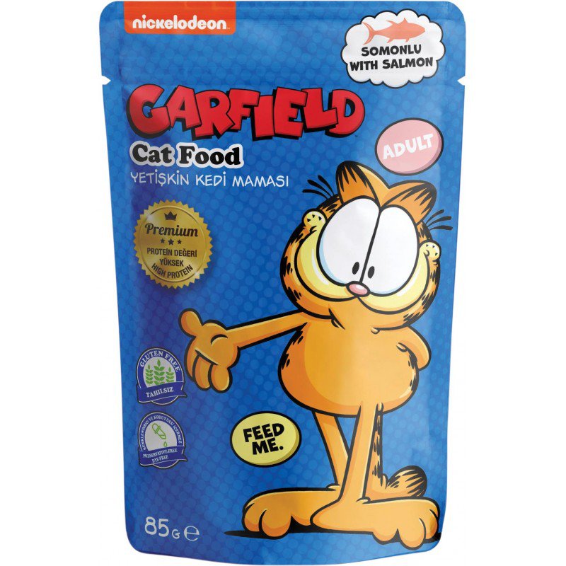 Pełnowartościowa karma dla kotów dorosłych. Mokra karma Garfield to pyszne kawałki mięsne zatopione w pysznej galaretce. Zapewni kotu wszystkie niezbędne składniki, które pomogą w codziennym funkcjonowaniu. Seria saszetek Garfield została sporządzona aby zapewnić pożywienie nawet najbardziej wybrednym kotom. Saszetki są w trzech pysznych smakach: jagnięcina, łosoś oraz kurczak.